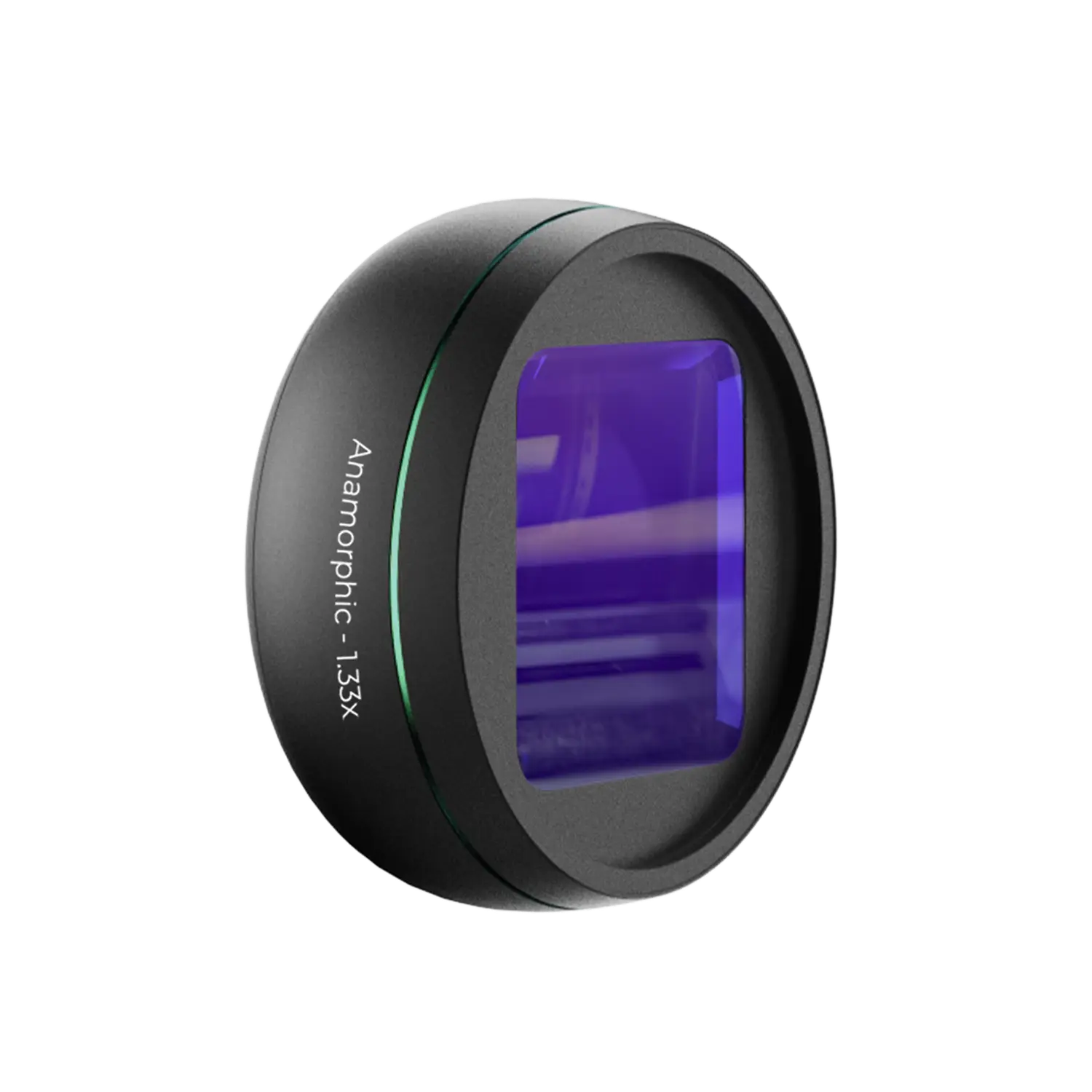 Transform your mobile videos into professional-grade films with the G-Series Anamorphic 1.33x lens. Capture the cinematic 2.35:1 widescreen aspect ratio, signature blue lens flares, and the striking black bars that define Hollywood storytelling—all without distortion.