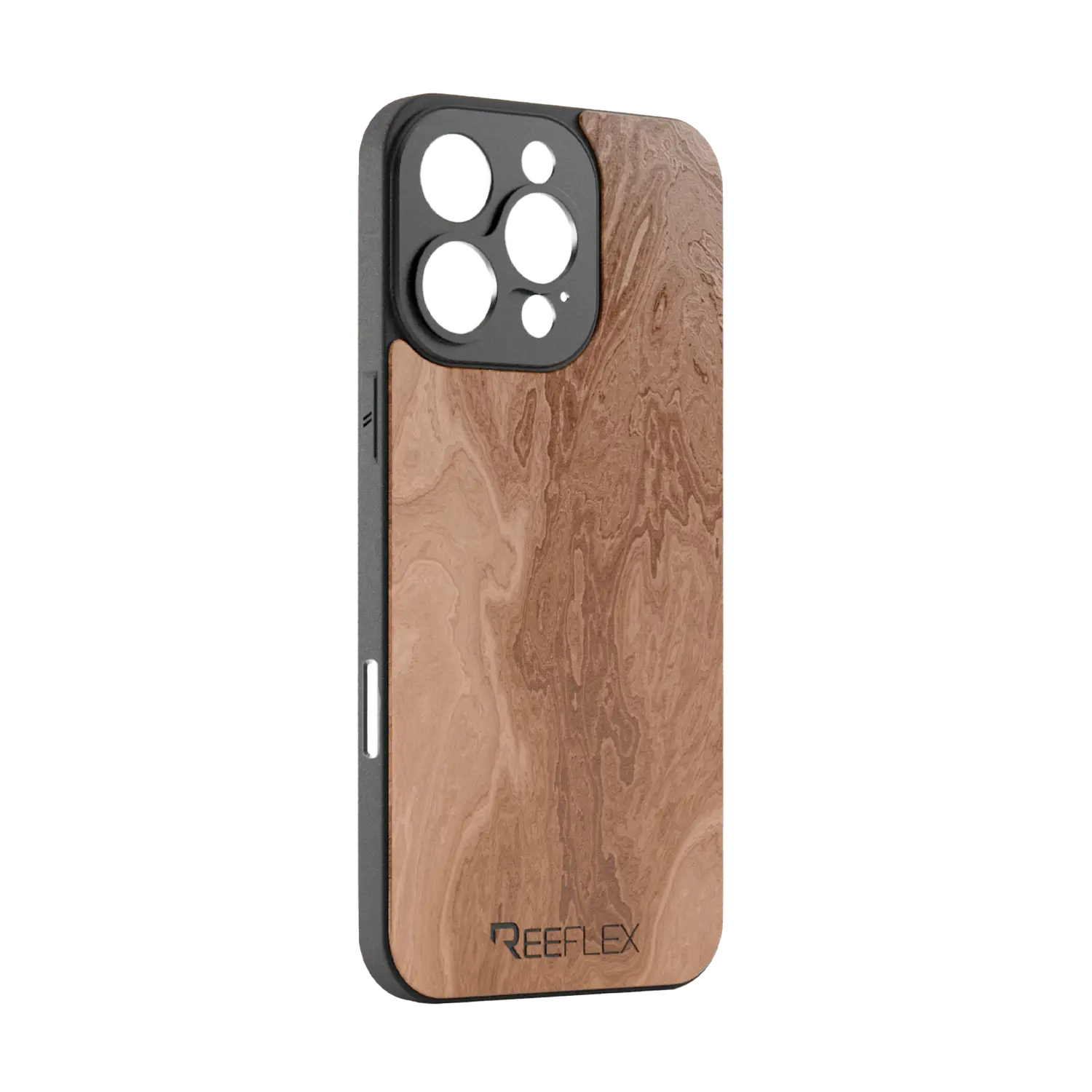 Unique and stylish, this case combines a natural wood finish with ergonomic grip.